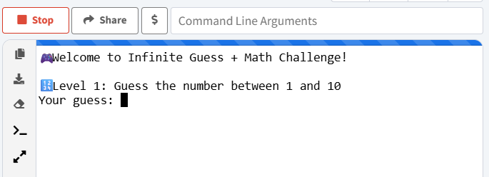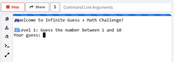 a fun game using python code that can be played online using a python interpreter or the python app that can easily be installed in your pc the game is simple guess a number that can be between 1-10 or 20-1000 in depends of your level that will get higher if you find the following number and manage to solve the math problem that will be given when you find the number the program is searching that's it hope you will enjoy the game :D